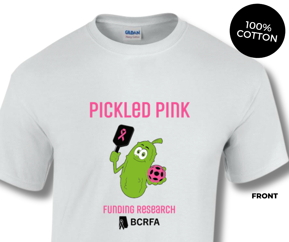 If you donate $50 or more, you will receive a Pickled Pink T-shirt (shown below)! When you set your personal fundraising goal and invite others to support your efforts, you will also receive a T-shirt to let everyone know your involvement to make a difference.